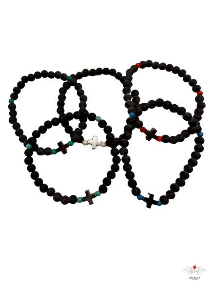 Bracciale rosario con vetro e croce ematite