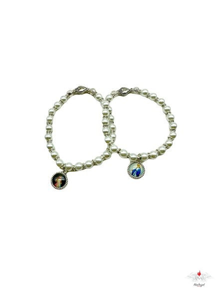 Bracciale rosario con cuore votivo, perle e cristallo con miracolosa
